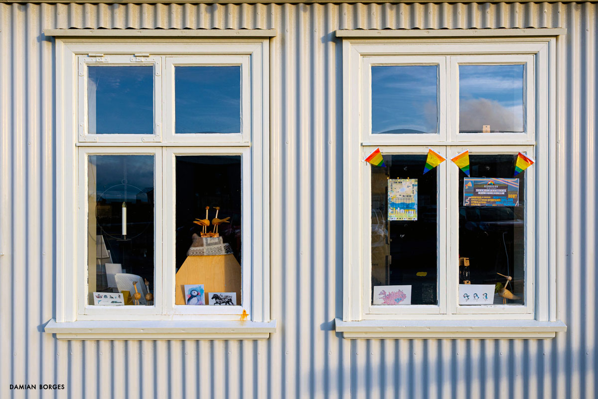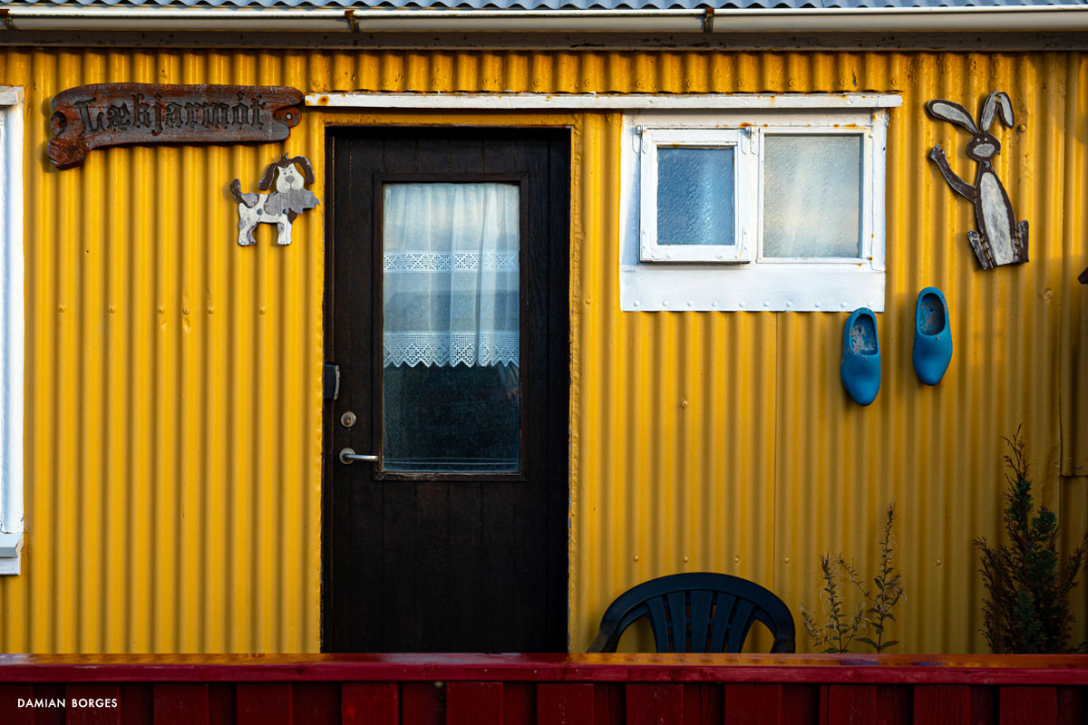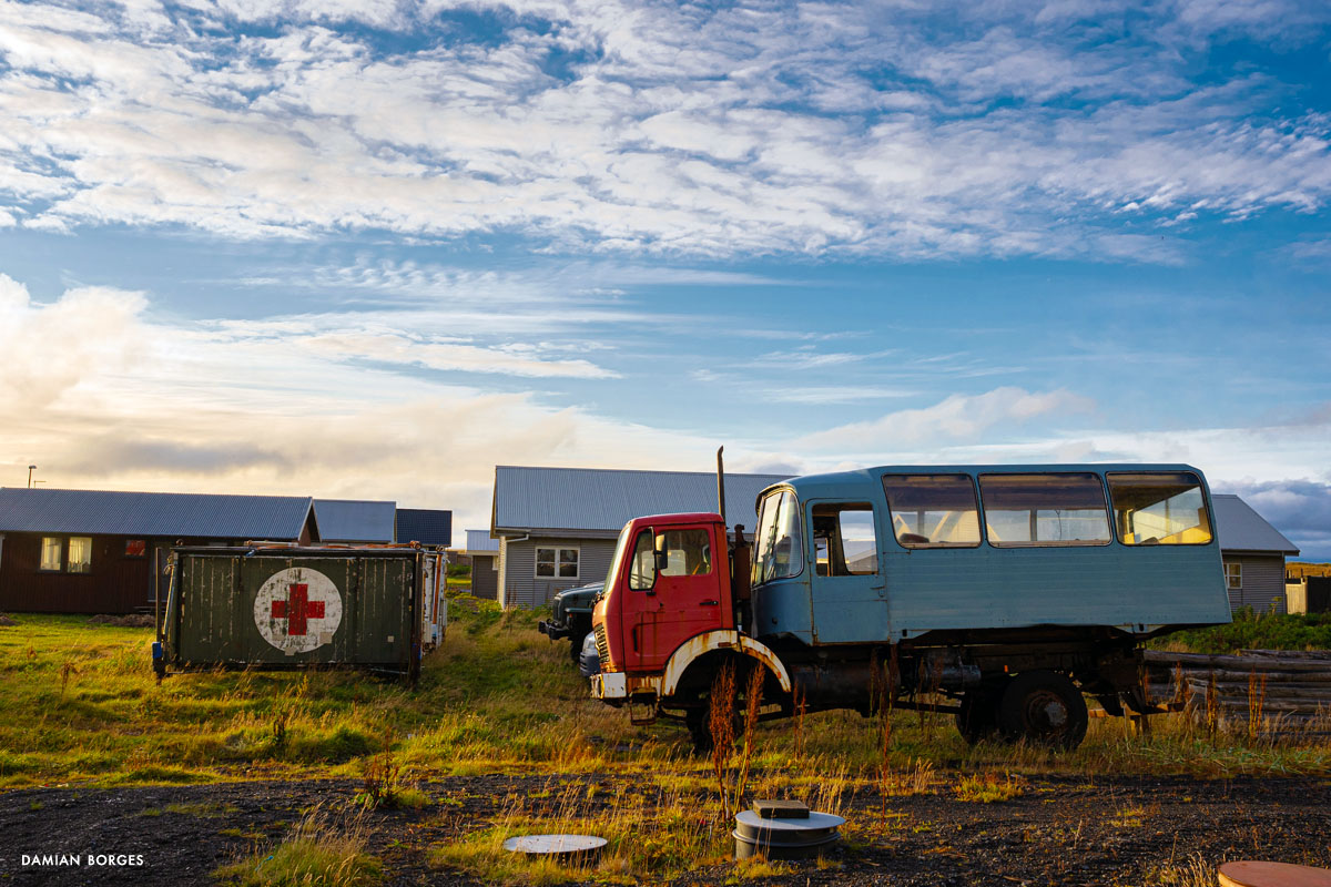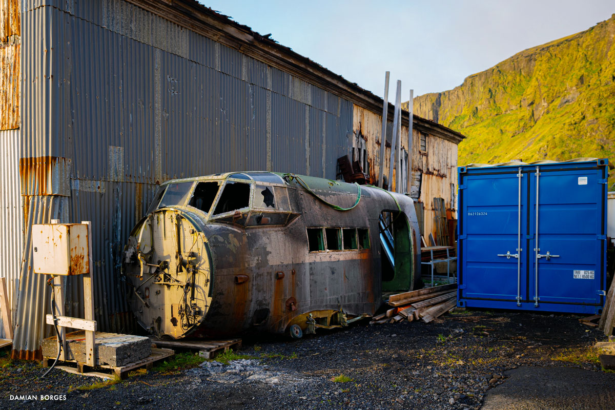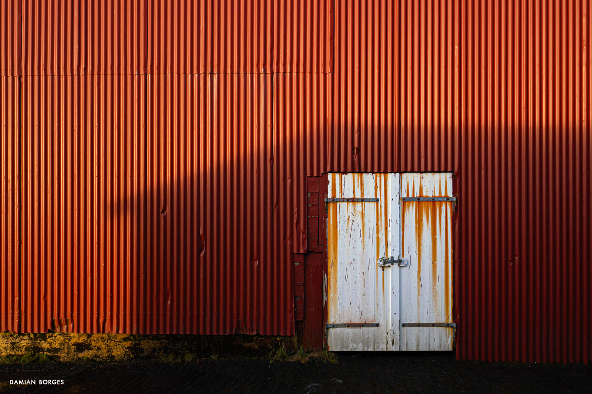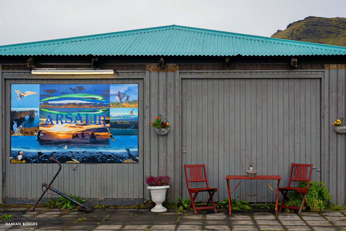 Vík (which means small bay in Icelandic) is an unassuming little town in a spectacular setting in the southern coast of Iceland. It is the only coastal town in Iceland without a port, and the southernmost, rainiest town in the country. Vík is an obligatory refueling and restocking point for travelers, tourists, hikers and drivers from all over the world. Many come to visit Vikurfjara, a notoriously dangerous black sand beach, a few minutes from town. It’s also a summer destination for birdwatchers. I’m here on a gorgeous, welcoming early morning in September –sunshine filtering through the gray clouds. It’s early, the gas stations, liquor stores, restaurants and hotels that crowd the highway look empty. Three hundred people live in Vik, yet visitors briefly swell the population into the thousands –a permanent impermanence. Everyone is still asleep and I can walk the solitary streets on my own, discovering and photographing without interruption –I only saw one person walking and two cars circulating. I saw houses and buildings, old, new, under construction; containers, lots of strewn and stacked containers; decaying objects and mechanical remains; and some local fauna and flora. The weather this morning is pleasant and the temperature comfortable, yet I can’t help but think that I would not last long under the harsh conditions of winter in this beautiful, savagely natural environment. As dawn slipped away and humanity resurfaced, I packed my car, had breakfast, and took my leave of Vík, continuing my drive along the Icelandic coastline.–Damian Borges